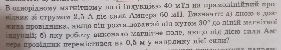 В однорідному магнітному полі індукцією 40 Мтл нп прямолінійний провідник зі струмом 2,5 А....... далі на фото!!