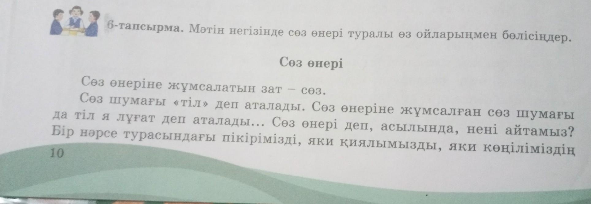 Срочно)) 6-тапсырма. Мәтін негізінде сөз өнері туралы өз ойларыңмен бөлісіңдер.((көмектесіңдерші)