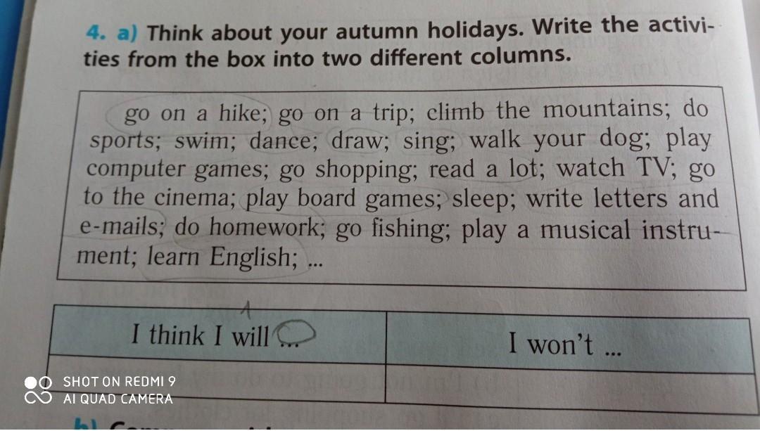 напишите по пять предложений своих планов осенних каникул, используя слова из рамок