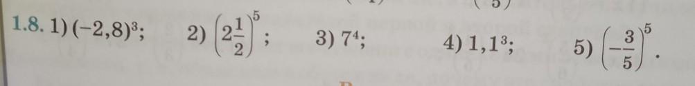 5) (-⅗)⁵=(-⅗)×(-⅗)×(-⅗)×(-⅗)×(-⅗)= -0,07776 или