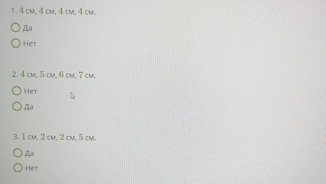 У простой замкнутой ломаной линии 4 звена. Возможны ли данные длины звеньев ломаной?