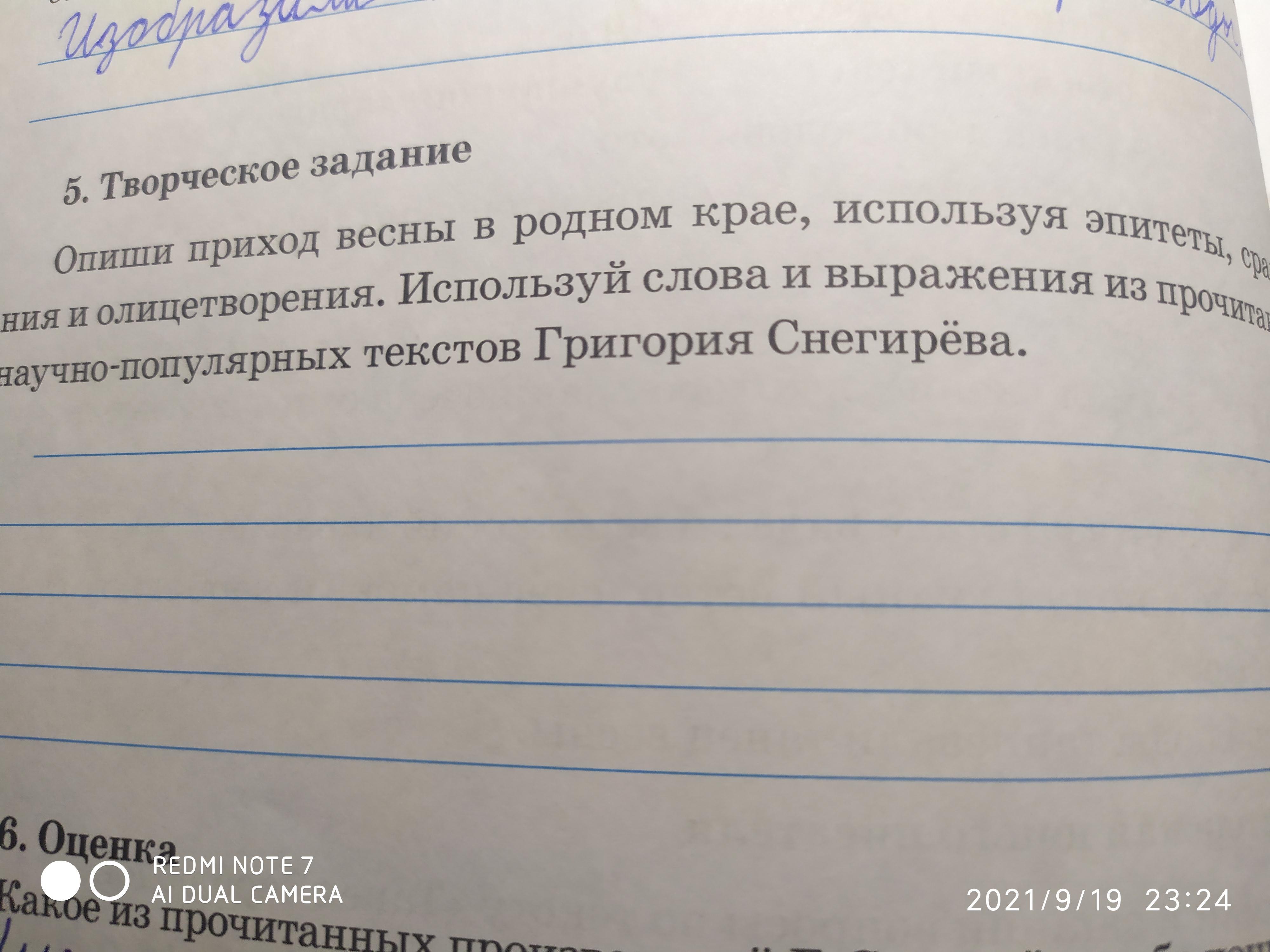 Опиши приход весны в родном крае, используя эпитеты, сравнения и олицетворение. Используй слова и выражения из прочитанных научно - популярных текстов Григория Снегорёва.