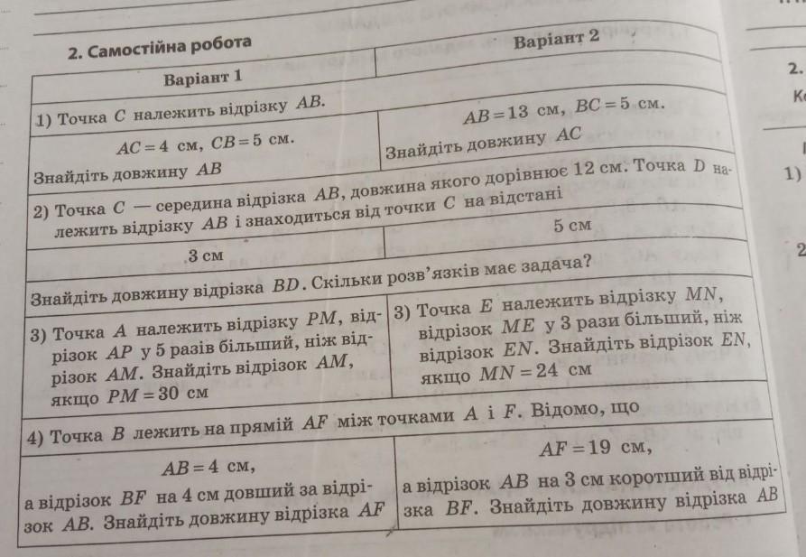 2) Якщо С середина відрізка то СВ=6 см (12:2), 6+3=9 см (довжина відрізка АD), отже ВD=12-9=3 см