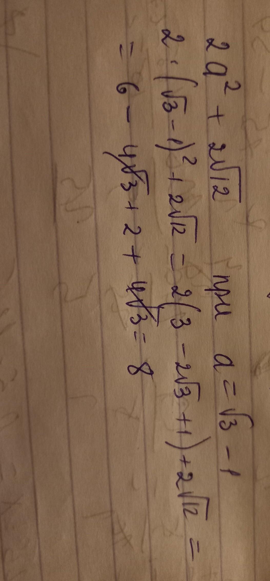 2*(а²+√12)², подставим √3-1 вместо а и воспользуемся формулой квадрата суммы выражений , получим