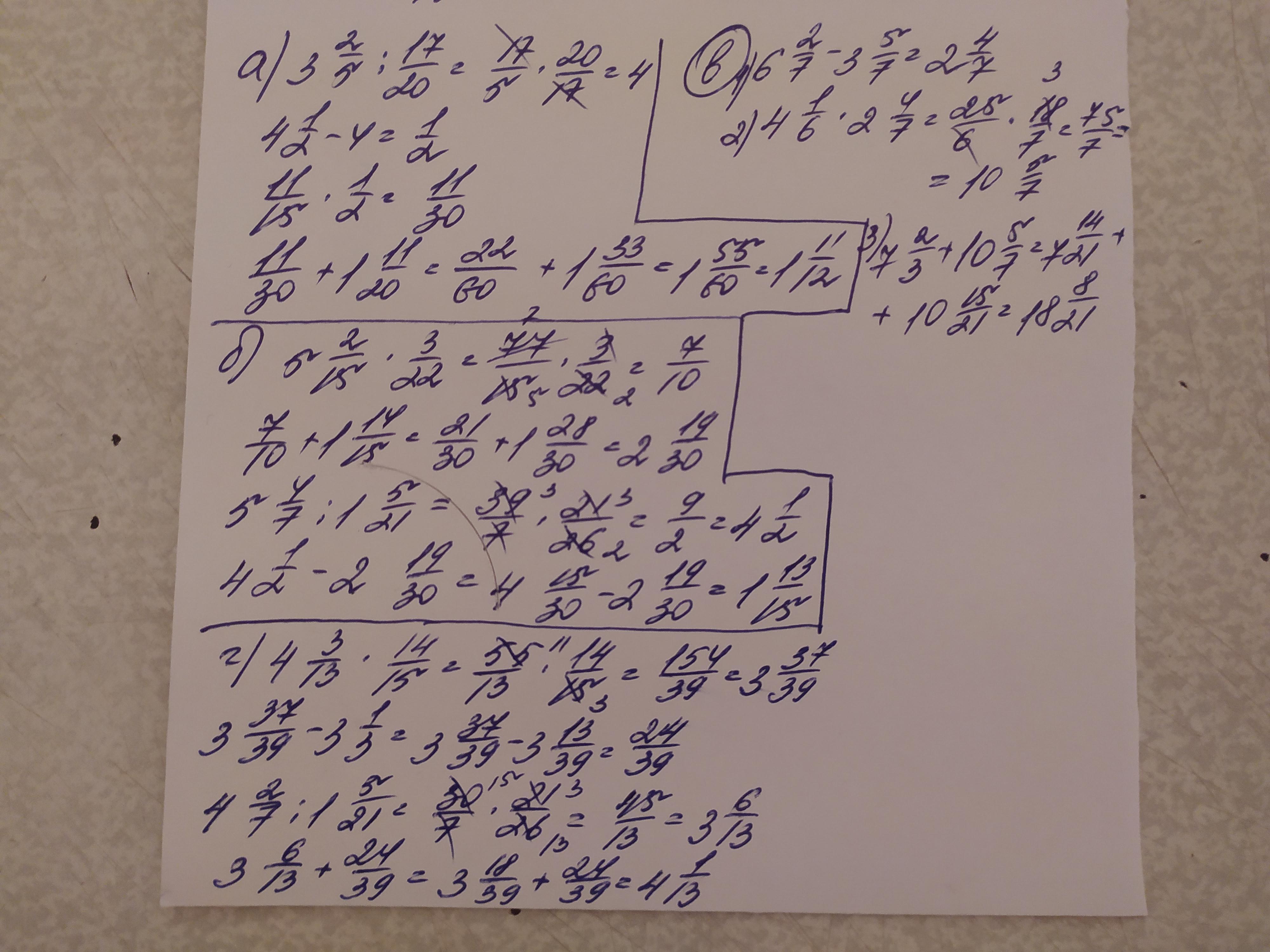Найдите значение числового выражения. а) 11/15*(4 1/2- 3 2/5 : 17/20) +1 11/20; б) 5 4/7:1 5/21-(5 2/15*3/22+1 14/15); в)7 2/3 + 4 1/6*(6 2/7-3 5/7); г)4 2/7 : 1 5/21 + (4 3/13 * 14/15 -3 1/3). Развёрнутый ответ по действиям пожалуйста. СРОЧНО!!!