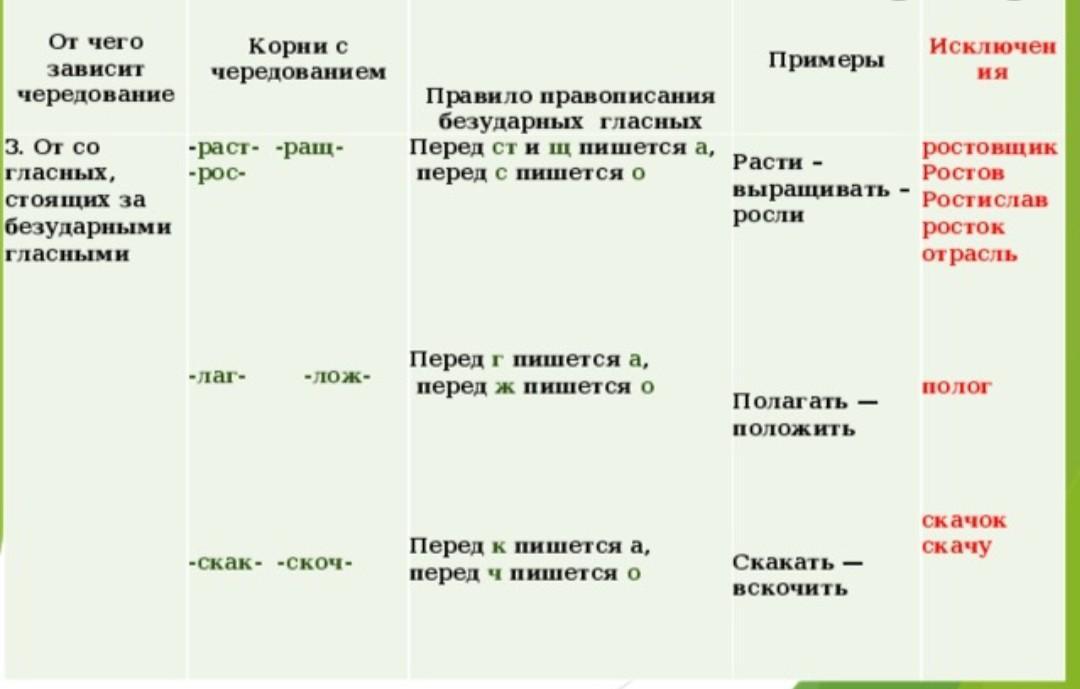 Дайте плиз таблицу с чередующимися корнями а то в интернете ничего нормального нет