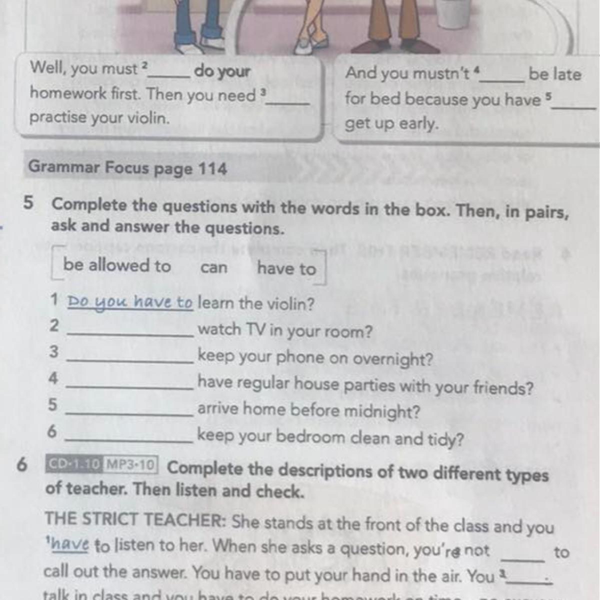 5 Complete the questions with the words in the box. Then, in pairs, ask and answer the questions. No 5