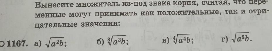√(a⁵b) = a²√(ab) a,b любые одного знака