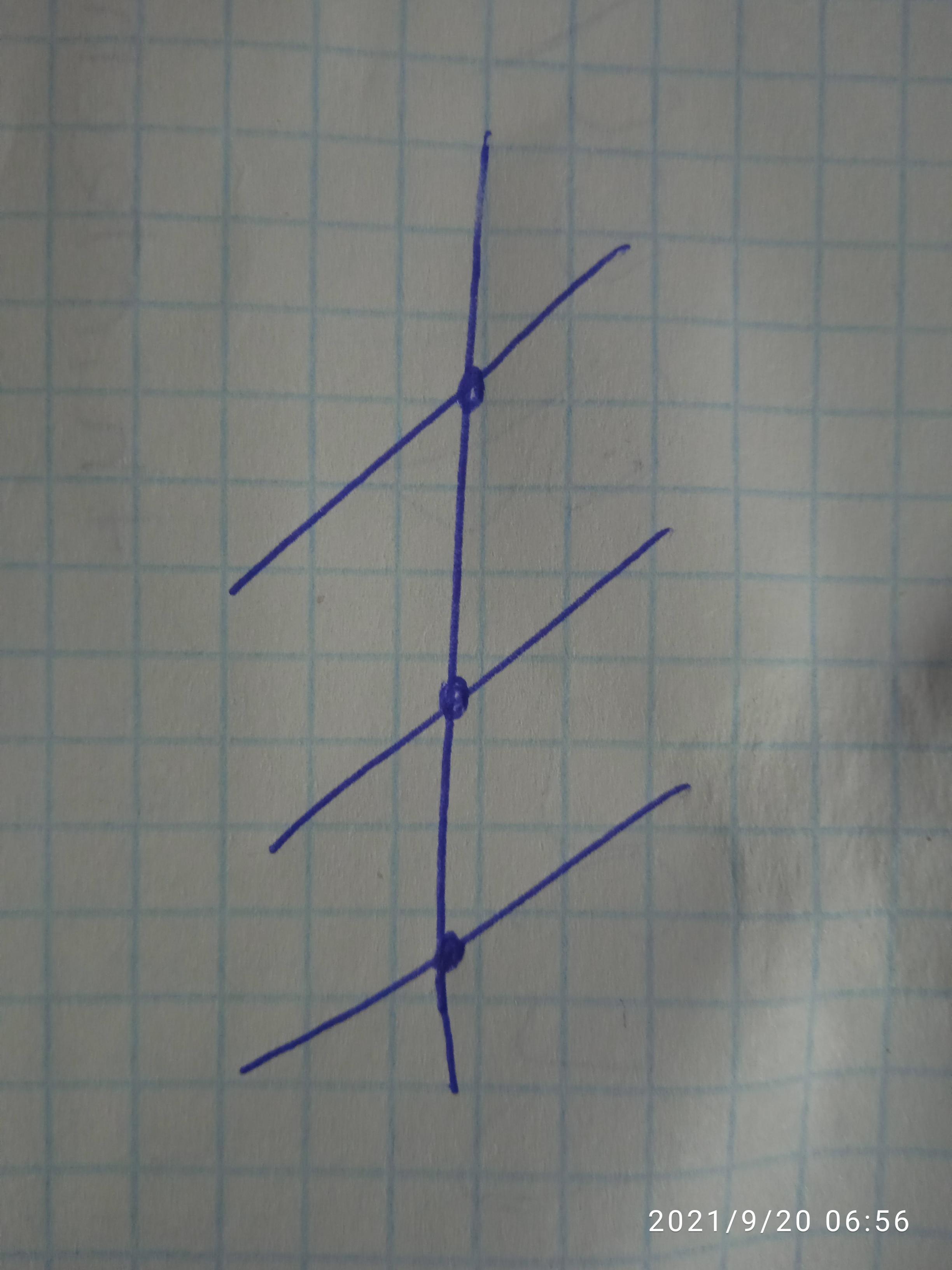 Прямую a пересекают 3 прямые. Сколько отрезков с конечными точками в точках пересечения могут образоваться на прямой a? Нарисуй все возможные случаи