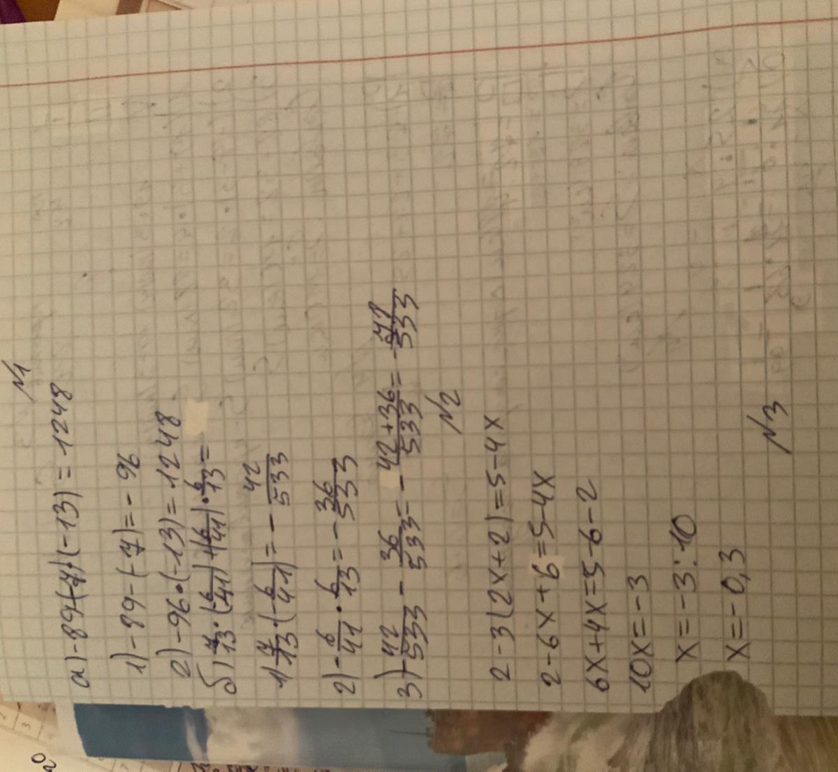 Ошибка во втопом номере там получается не 0,3, а 1,2. яа впервом номере во втором можно сократить и пооучает (-6/41)