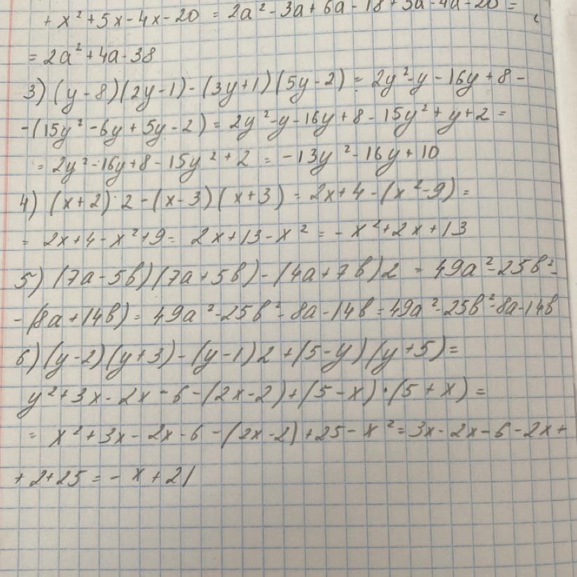 6) (Y - 2)(y + 3) - (y - 1)2 + (5 - y)(y + 5).