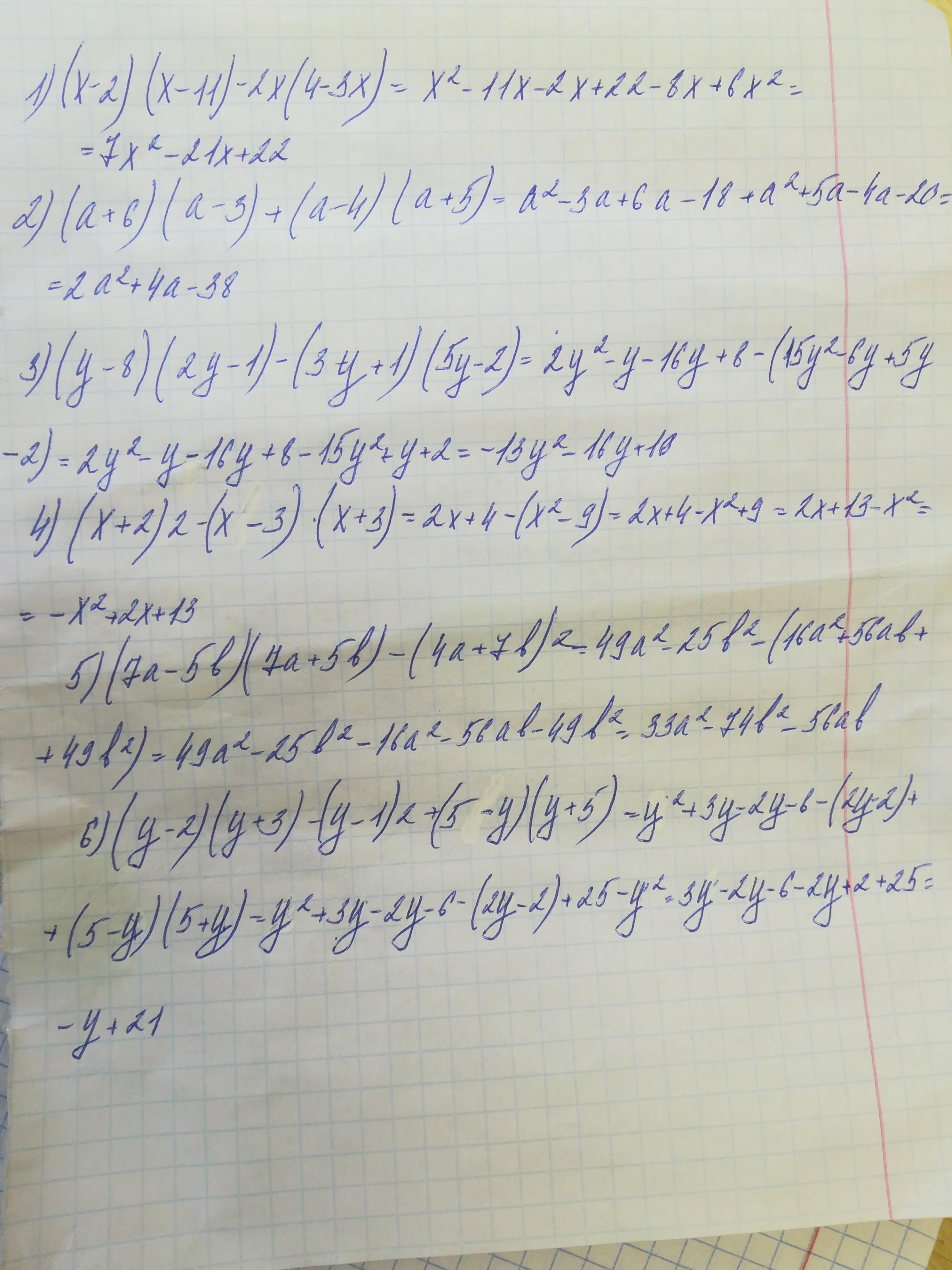 1) (х – 2)(х – 11) – 2х(4 – 3х);