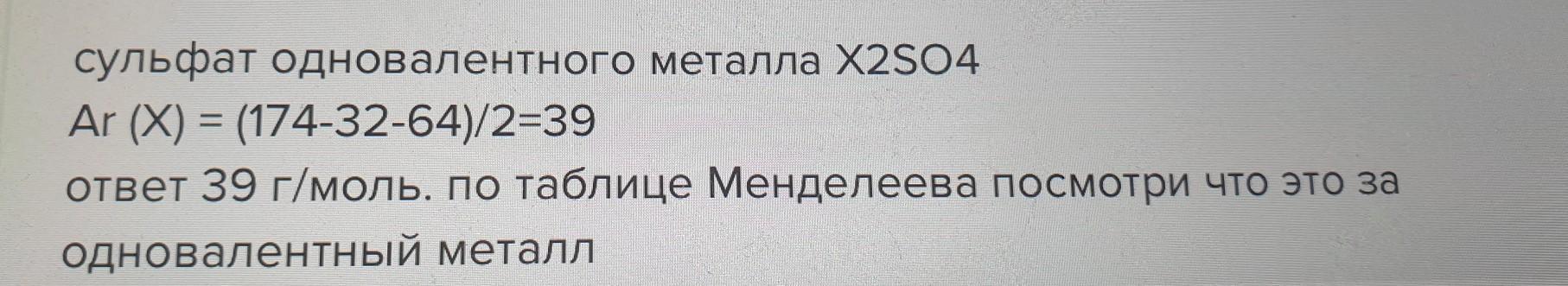 Молярная масса сульфата одновалентного