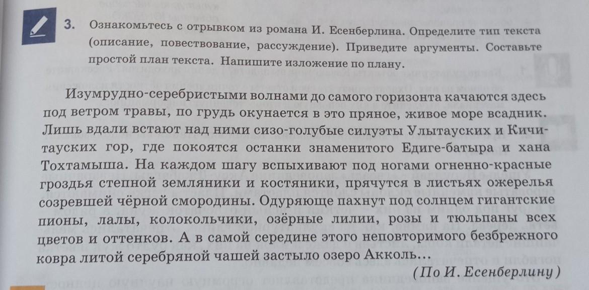 Ознакомьтесь с отрывком из романа И. Есенберлина. Определите тип текста (описание, повествование, рассуждение). Приведите аргументы. Составьте простой план текста.