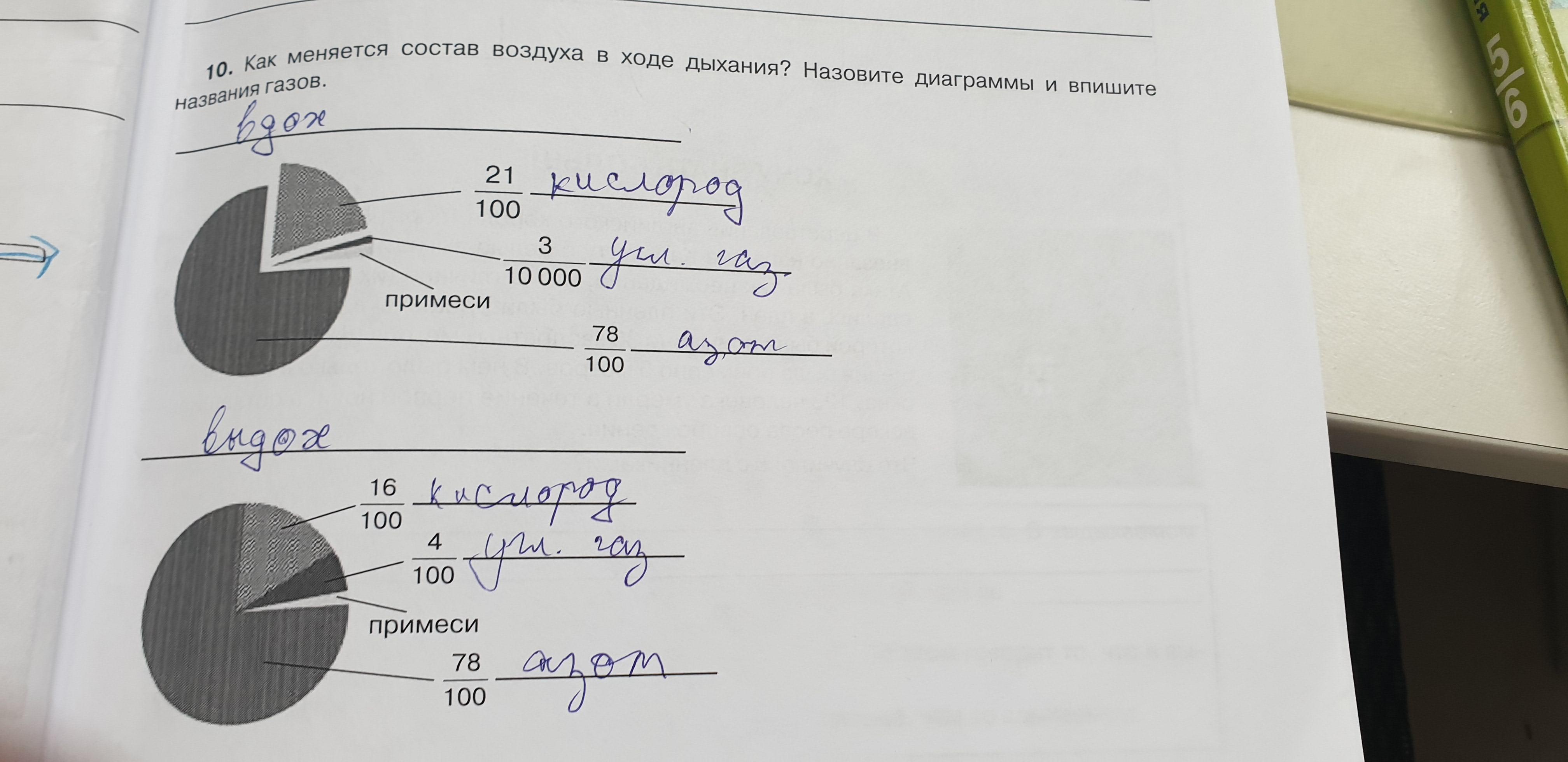 1строка: Газы вдыхаемый воздух выдыхаемый воздух