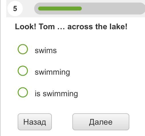 Tom is swimming. Present Continous. Он плавает в данный момент. Тому доказательство слово Look!