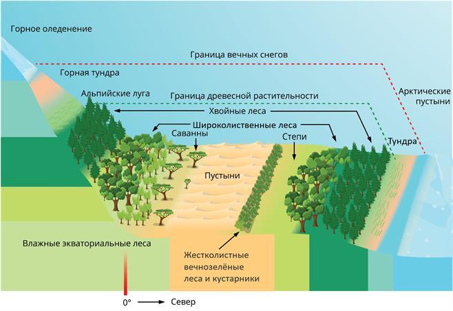 Это изменение климатических условий с высотой местности, представлена в горах, сменяются природные зоны, как и от экватора к полюсам, так и здесь, ток здесь это в высоту. Происходит из-за того, что изменяются показатели давления и температуры с высотой, вместе с ростом прихода солнечной радиации падает способность к теплоёмкости у подстилающей поверхности. Осадков нет из-за барьерного эффекта гор. Но на наветренных склонах могут выпадать шквалистые осадки, вследствие которые очень быстрой конвекции из-за особенностей орографии (высокие горы в качестве барьера, это я уже упомянал)