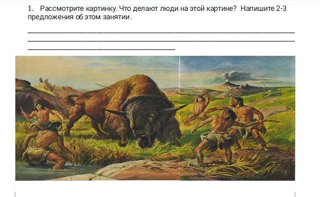 1. Рассмотрите картинку. Что делают люди на этой картине? Напишите 2-3 предложения об этом занятии.