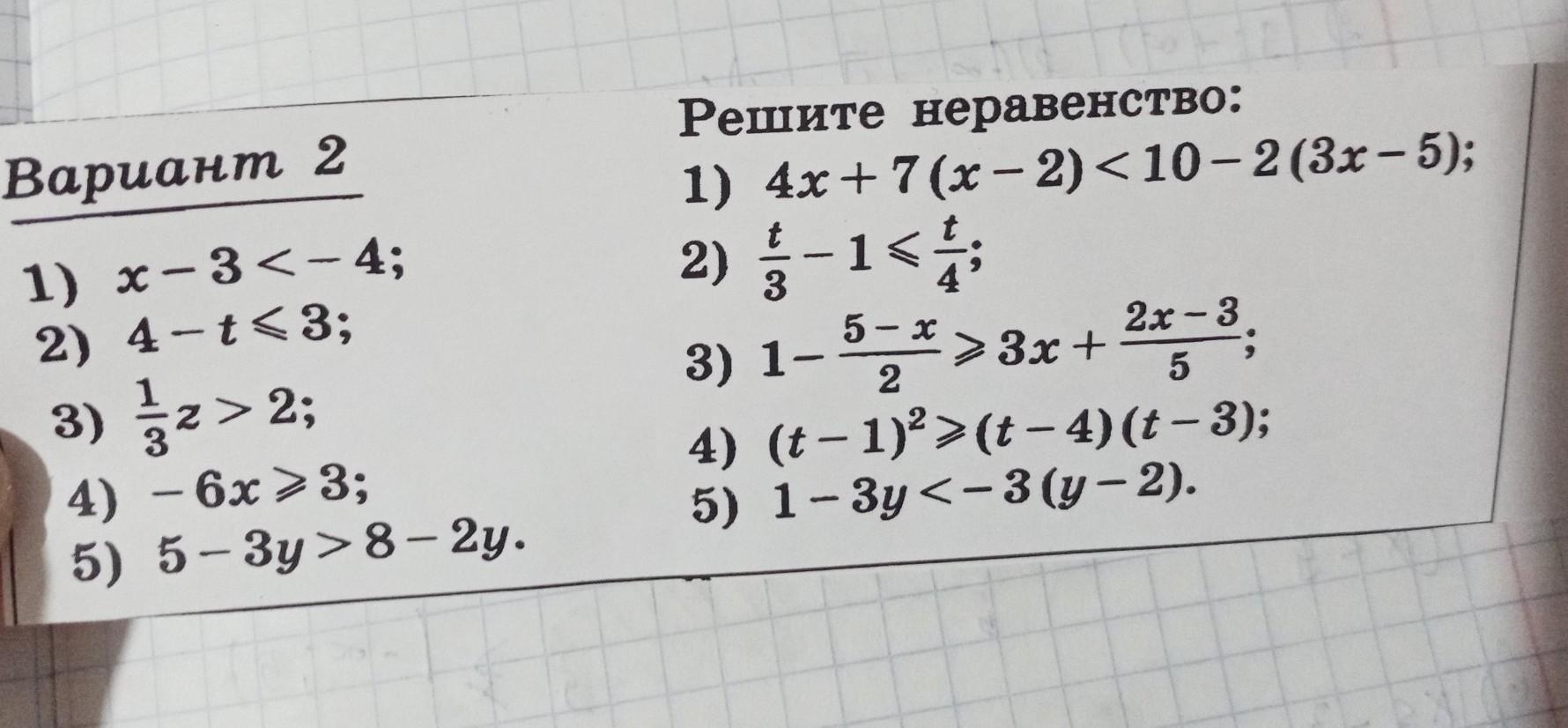 Прошу помогите с решением проверочный. Тема: Решение линейных неравенств