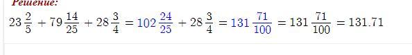 2 действие 232/5 + 79 14/25 +28 3/4= 131 71/100