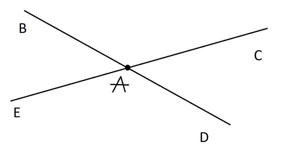 Отметьте точку а и проведите через неё две различные прямые. Обозначьте и запишите получившиеся лучи