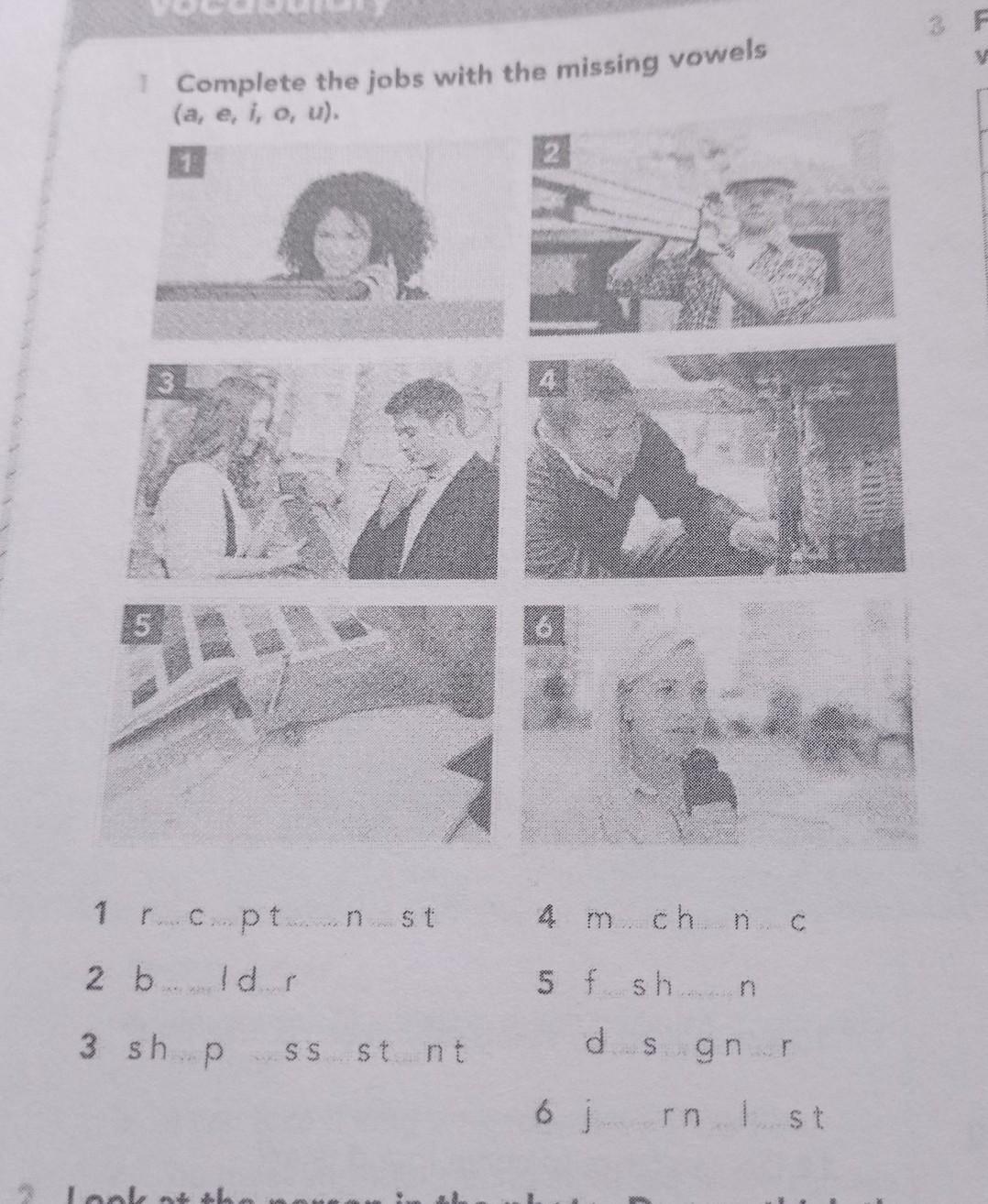 Complete the jobs with the missing vowels (a, e, i, o, u). помогите, пожалуйста, очень срочно