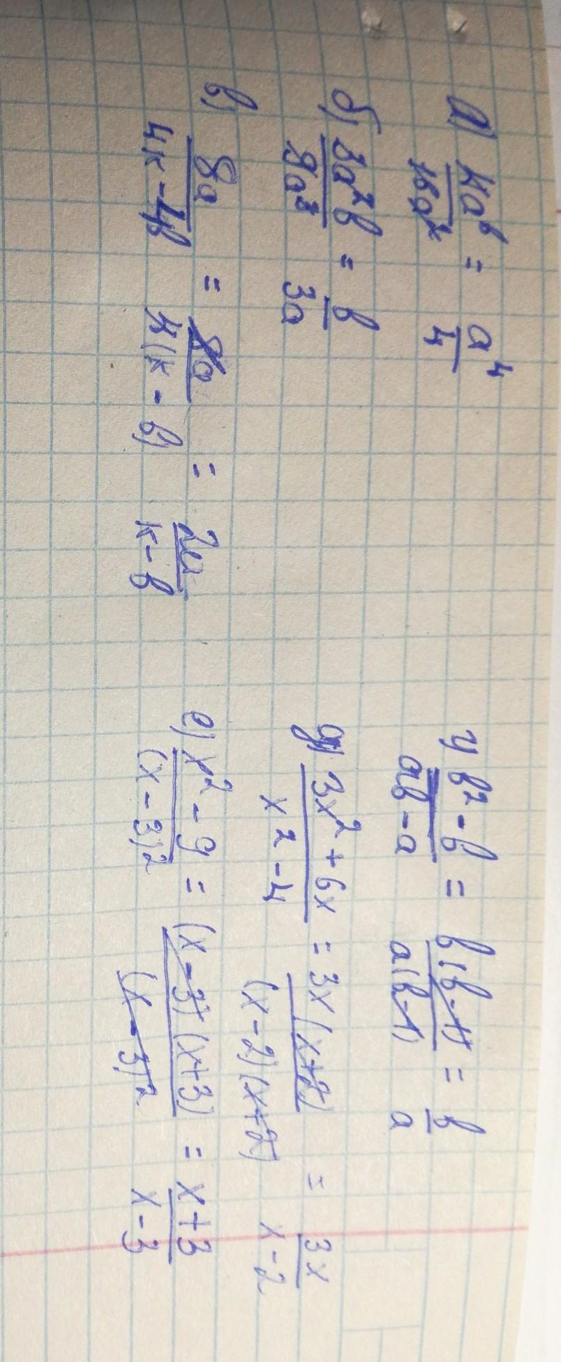 2. Скоротити дроби: 4a6 3а2в а) ; в) 8а ; 6) ; 16a2 9a3 4к-4в в2 - в x² -9 г) ; д) 3х2+6х х2 – 4 ; е) ав-а cello Write-nae (x – 3)? 67