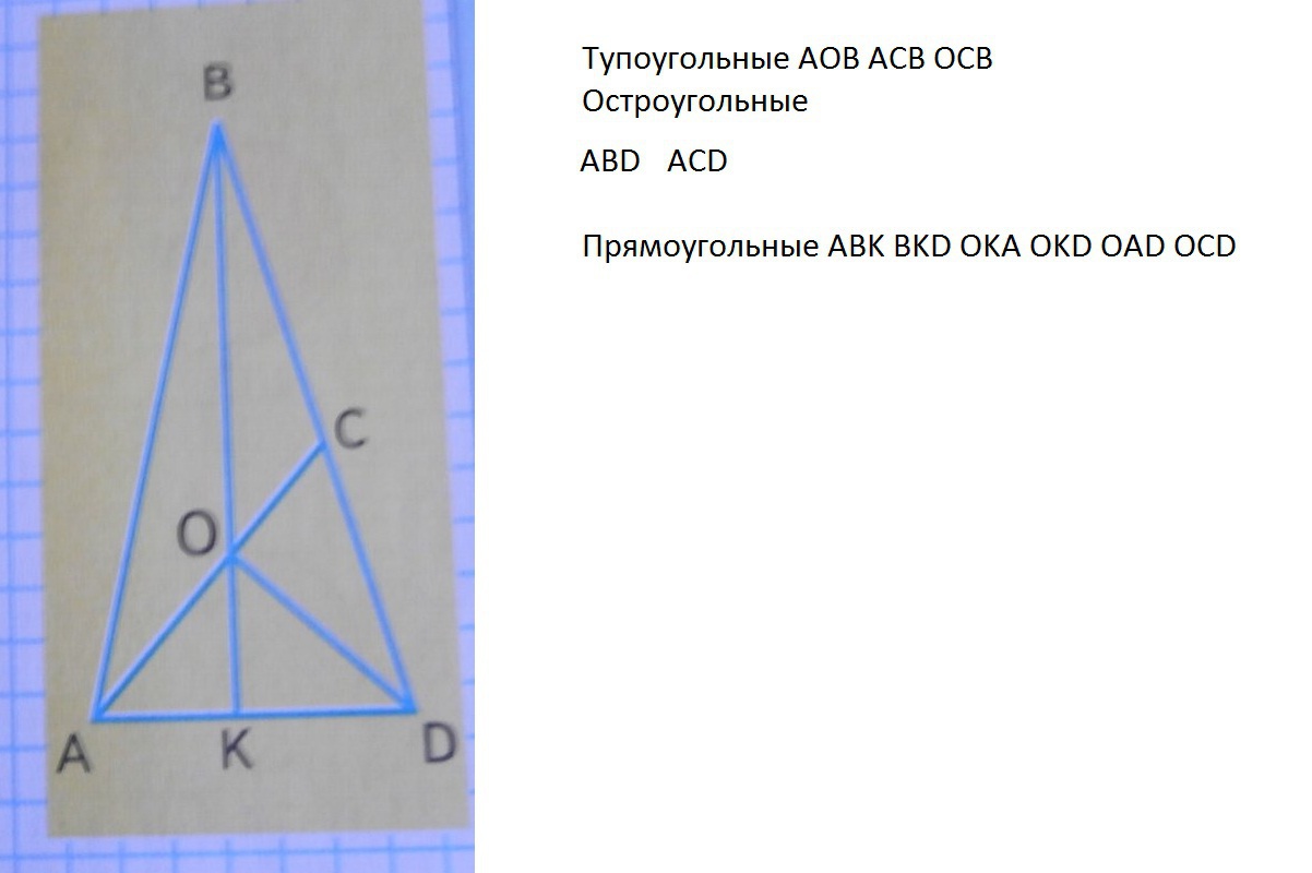 Выпиши названия тупоугольных,прямоугольных и остроугольных треугольников.