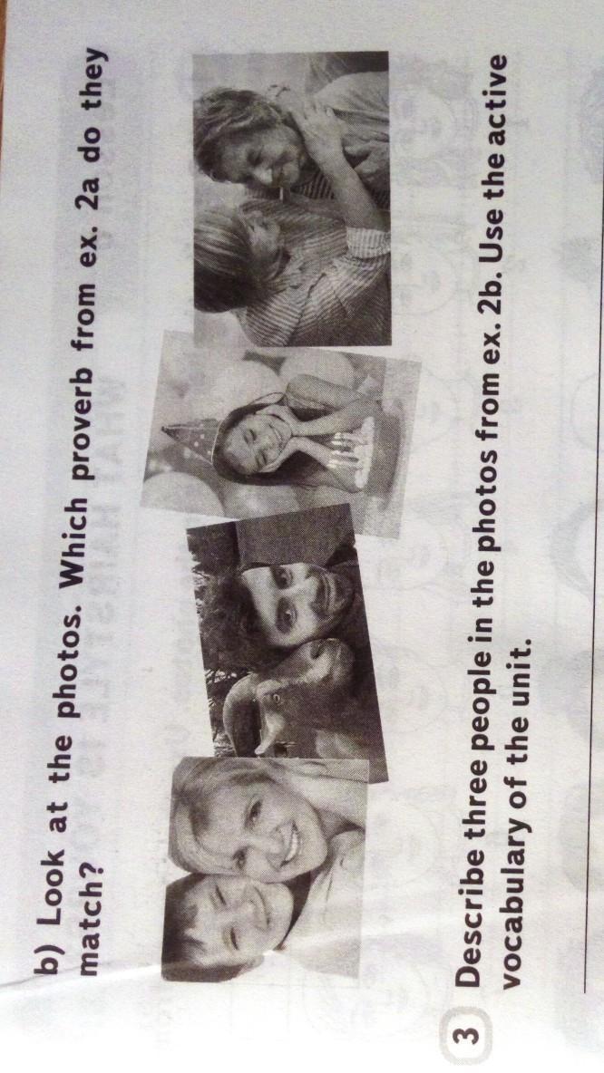 3 Describe three people in the photos from ex. 2b.Use the active vocabulary of the unit.