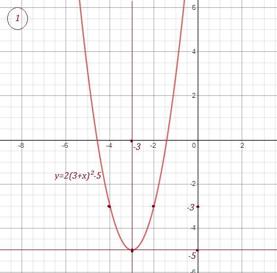График заданной функции получается из графика функции путём сдвига этого графика на 3 единицы влево вдоль оси ОХ и на 5 единиц вниз вдоль оси ОУ. А также полученный график надо растянуть в 2 раза вдоль оси ОУ .