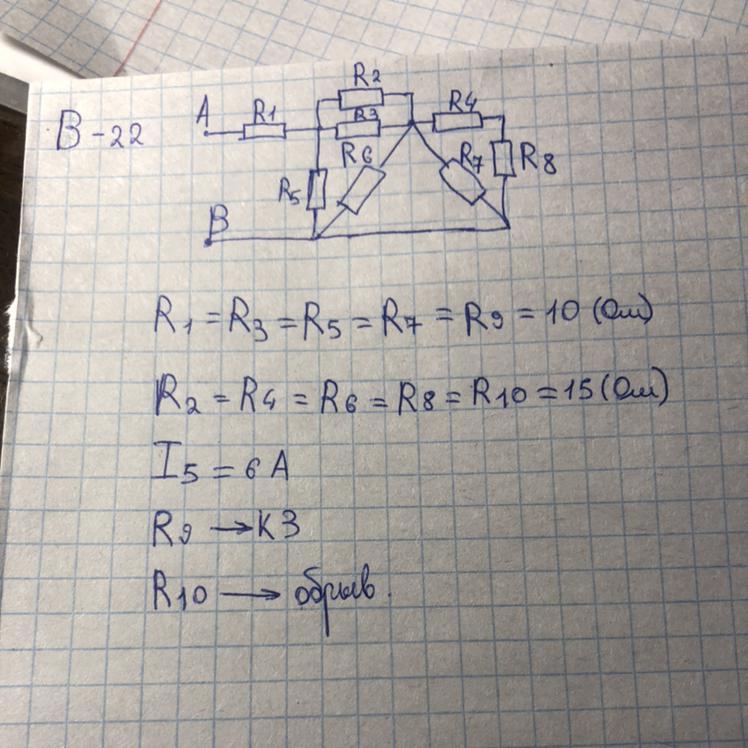 Расчёт цепи постоянного тока. Определить токи и напряжения для каждого напряжения цепи.