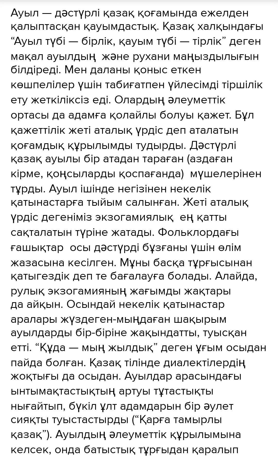 Ауыл өте әдемі, сіздің туыстарыңыз, ата -әжелеріңіз тұрады. Жылқы, ешкі, сиыр көп.