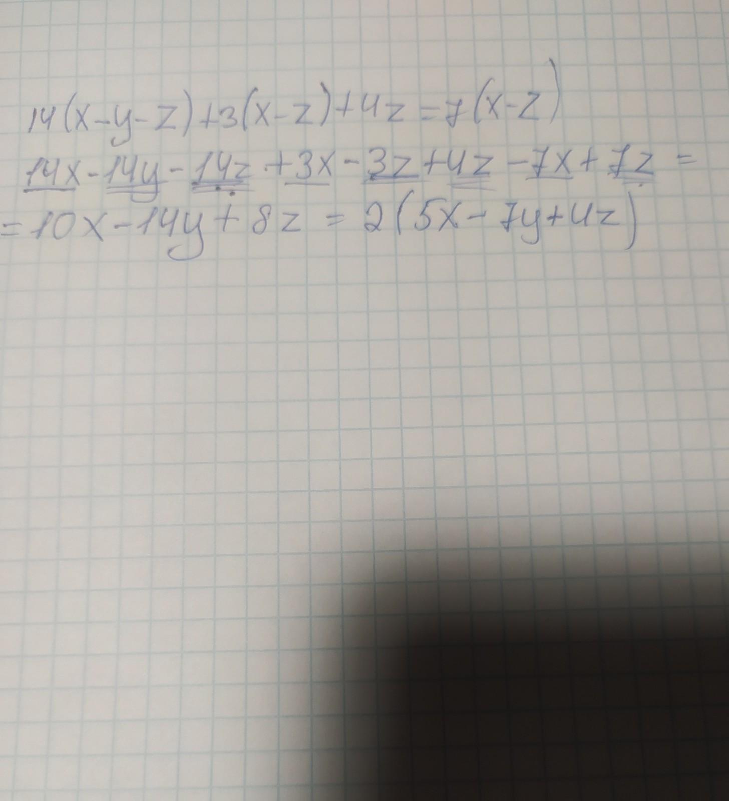 Ответ: 14x-14y-14z+3x-3z+4z=7x-7z