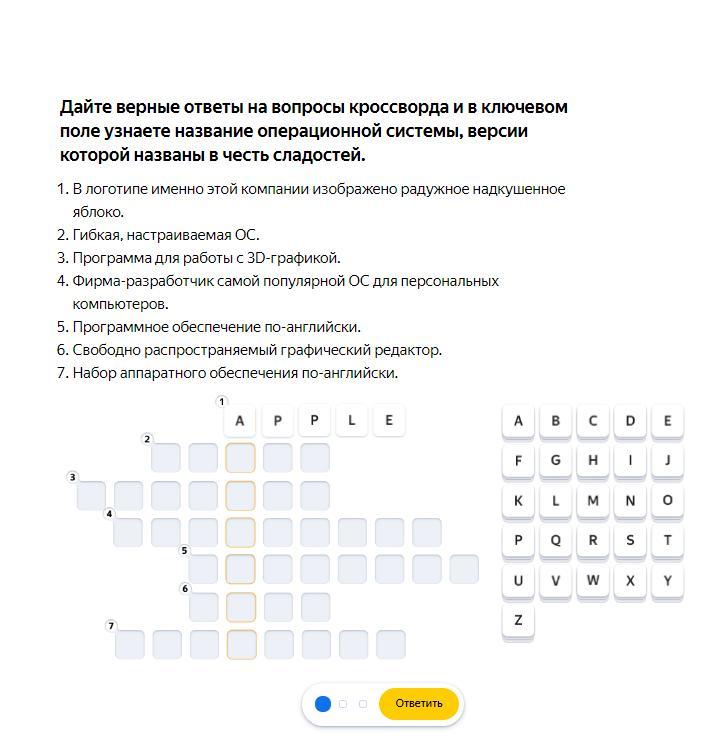 ПОЗЯЗЯ Дайте верные ответы на вопросы кроссворда и в ключевом поле узнаете название операционной системы, версии которой названы в честь сладостей?
