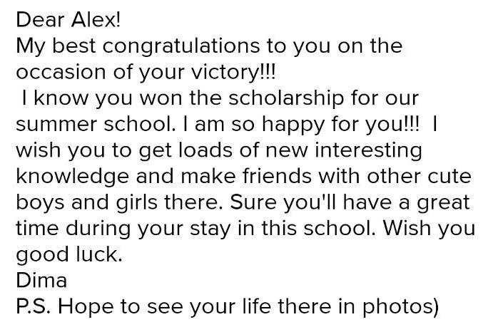 Writing RNE Portfolio: A friend of yours has won a scholarship to study at a summer school. Write a greetings card to congratulate your friend. Use the cards in Exs.3 & 5 as a model. (30-40 words.)