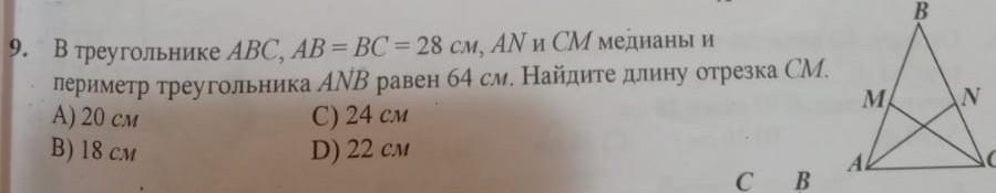 периметр это сумма длин всех сторон, следовательно MC=64-(28+14)=22