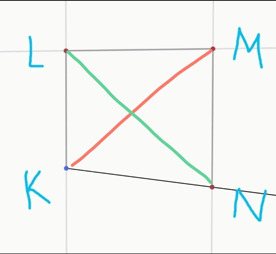 Диагонали четырёхугольника KLMN (отрезки, соединяющие противоположные вершины четырёхугольника): KM, LN.