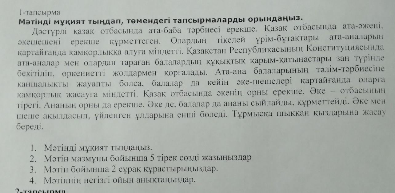 4) Бұл мәтінде өскелең ұрпаққа ата ананың әже мен атаның орны туралы, оларды құрметтеуімз қажет туралы айтылады.