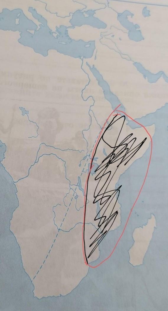 Заполните контурную карту (с. 7) «Древнейшие люди на Земле». 1. Напишите название материка, на котором археологами найдены кости и орудия труда древнейших людей. 2. Закрасьте предполагаемую область прародины человека. 3. Отметьте кружочками наиболее древние стоянки человека и его предков.