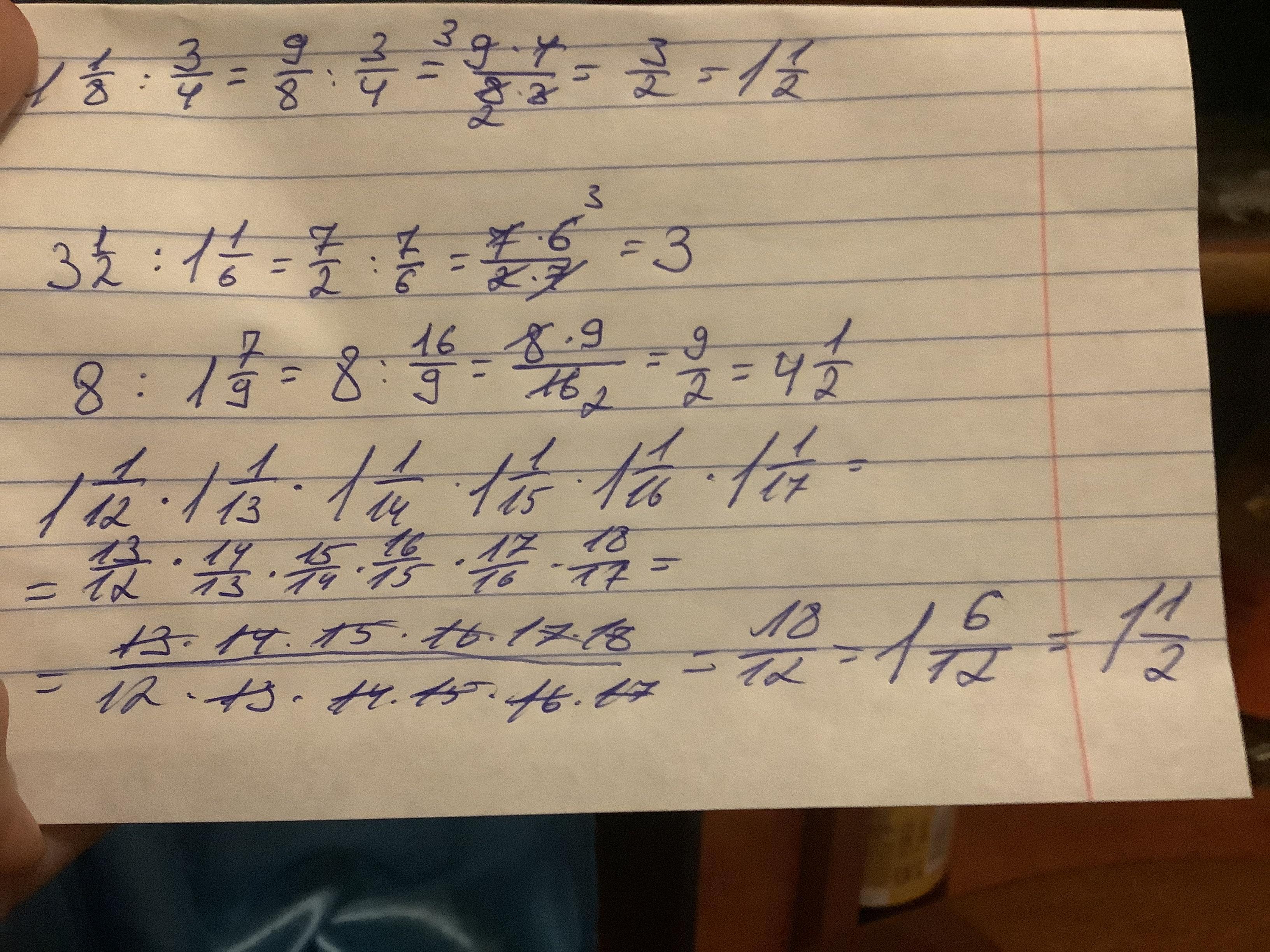 одна целая одна двенадцатая умножить на одну целую одну тринадцатую умножить на одну целую одну четырнадцутую умножить на одну целую одну пятнадцатую умножить на одну целую одну шестнадцатую умножить на одну целую одну семнадцатую (пожалуйста прикрепите решение в тетради потому что это домашнее задание и если можно по действияем(если по действияем нельзя решить то извините только проходим)