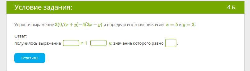 3(0,7х+у)-4(3х-у)=2,1х+3у-12х+4у=-9,9х+7у.