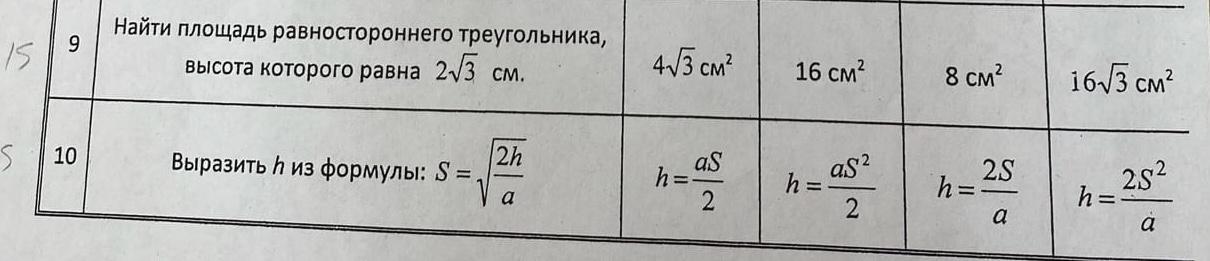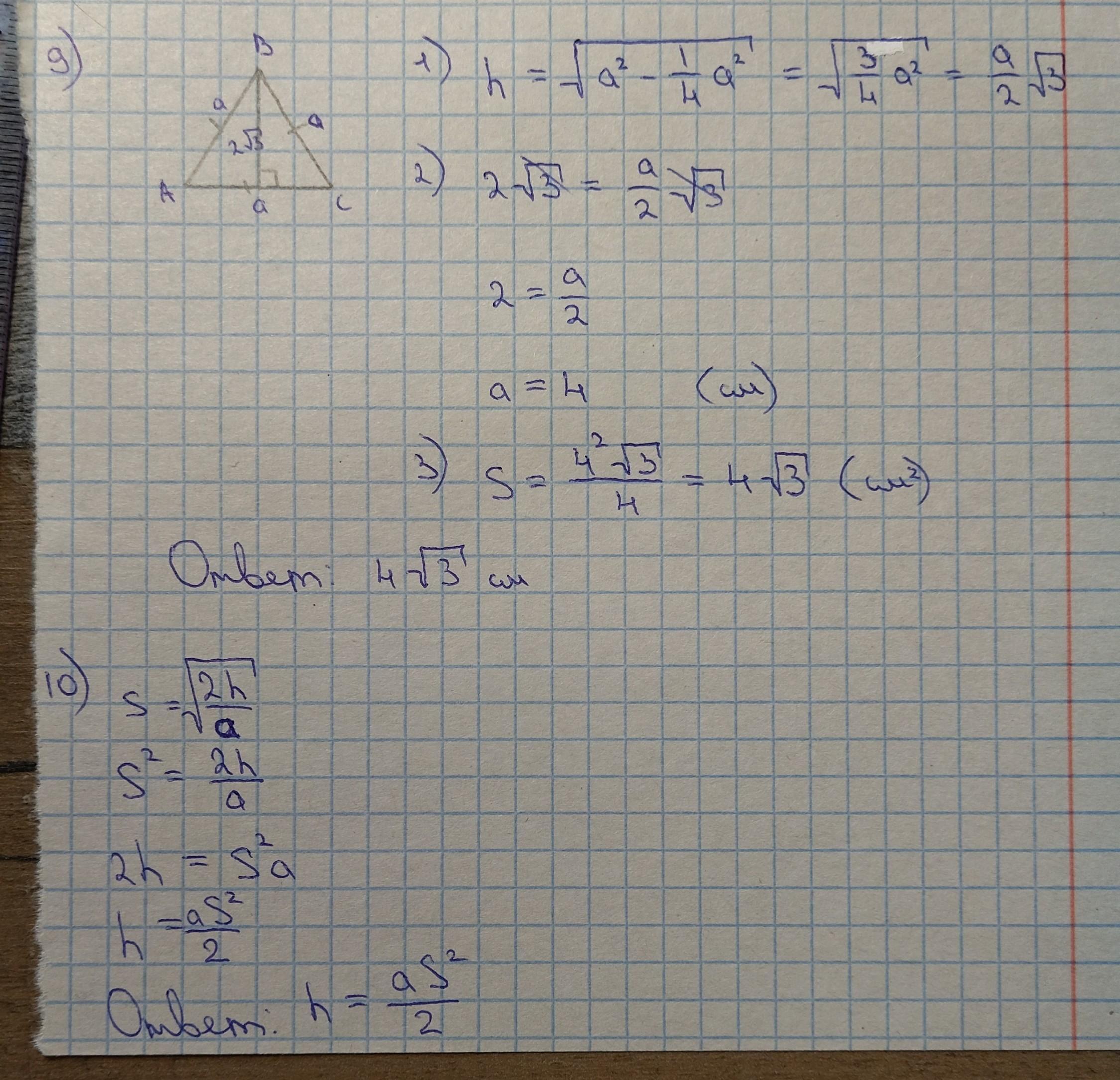 4√3 и h=aS2/2