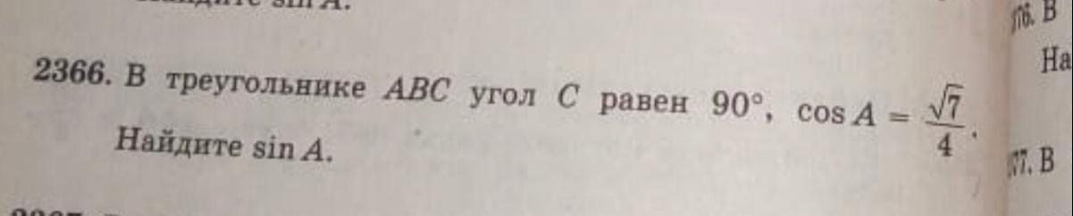 cos²α+sin²α=1sinA=√1-cos²A=√1-7/16=√9/16=3/4