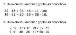 задание 2 Вычислите наиболее удобным способом 52 х 48 + 36 х 48 + 11 х 48 и так далее там прошу помогите