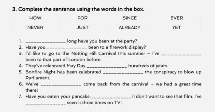 7. yet (уже съел блин?); already (уже видел этот фильм три раза)