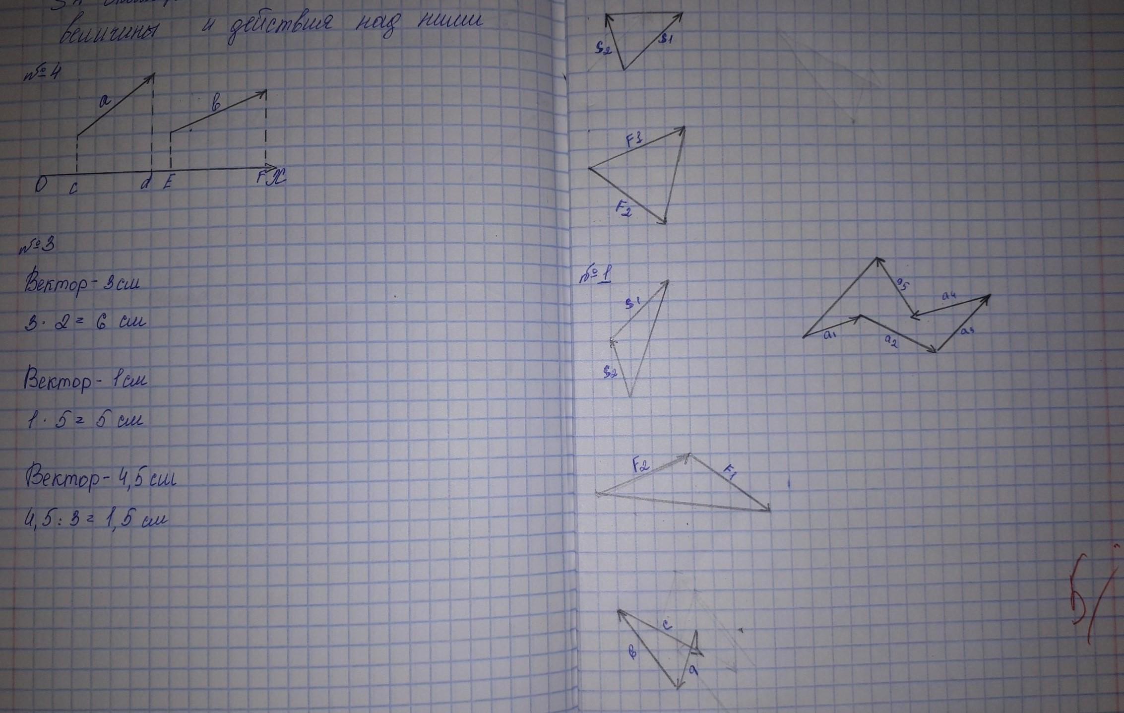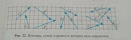 определите и запишите в тетради разность векторов: а)s1 и s1; б)F1 и F2 , изображенных на рис.22