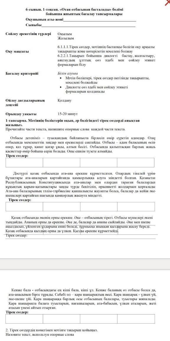 3тірек сөздер: әке, отбасы, қазақ, қыз