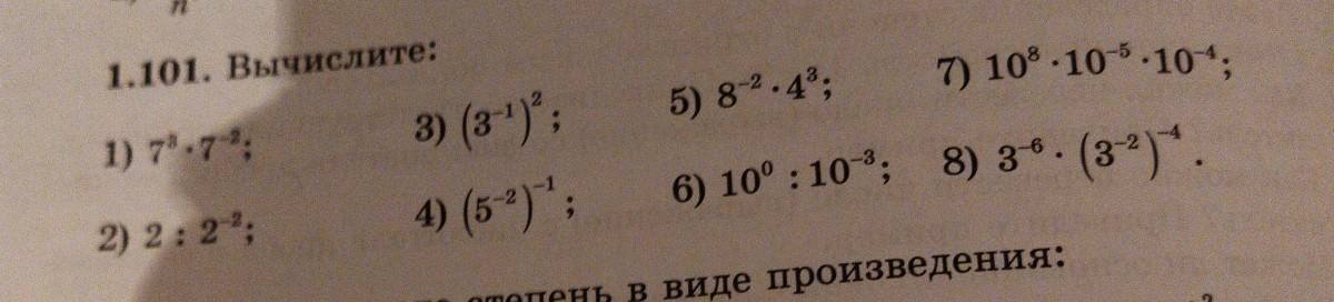 5) 8^-2 * 4^3 = 2^-6 * 2^6 = 1