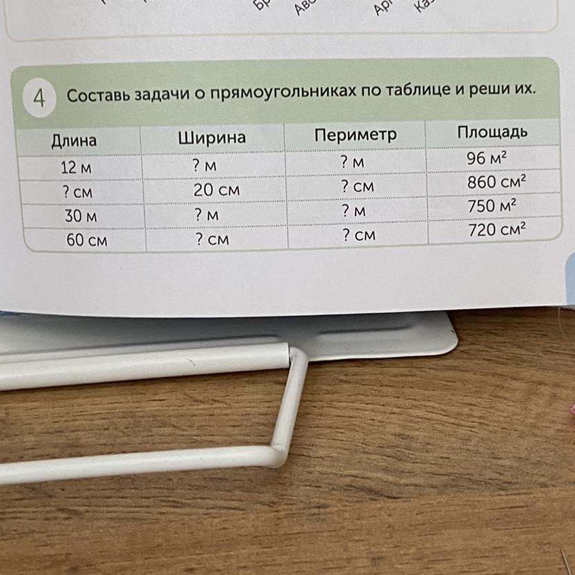 4 Составь задачи о прямоугольниках по таблице и реши их.