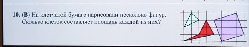 10. (В) На клетчатой бумаге нарисовали несколько фигур. Сколько клеток составляет площадь каждой из них?